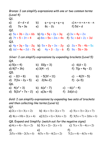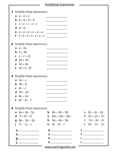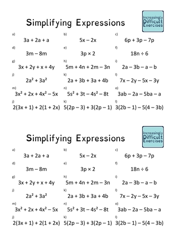 Simplifying expressions questions - taylorda01. A Algebraic notation and simplifying by collecting like terms and multiplyingdividing expressions. Here you can find all manner of KS3 Maths worksheets on variables exponents integers and more all of which can be used to develop the core KS3 Maths skills pupils need for GCSE attainment.